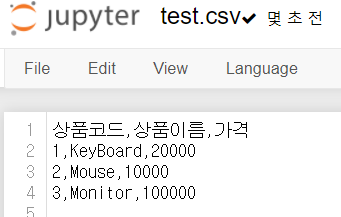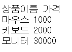writer.writerow(["상품코드", "상품이름", "가격"])