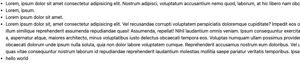 <li>Lorem, ipsum dolor sit amet consectetur adipisicing elit. Nostrum adipisci, voluptatum accusantium nemo quod, laborum, at hic libero nam obcaecati dicta. Iste explicabo, porro mollitia qui vel totam blanditiis magni!</li>
