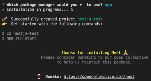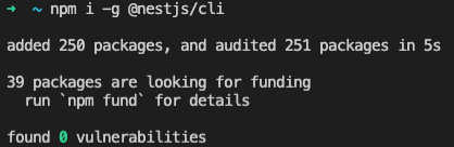 NestJS 서버를 구성하기 위해 먼저 @nestjs/cli를 설치합니다.