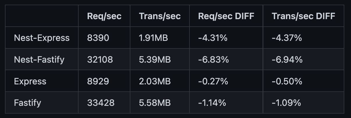 이에 반해 NestJS는 데이터베이스, ORM, 설정(Configuration), 유효성 검사 등 수 많은 기능을 기본 제공하고 있습니다.