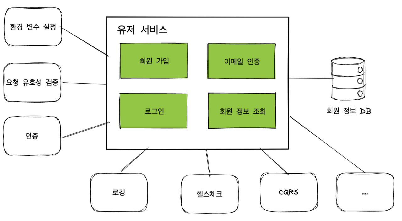 우리의 유저 서비스는 외부에서 4가지의 요청을 받아 처리합니다.