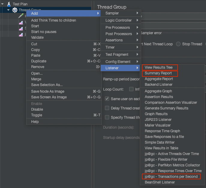 - Thread Group(우클릭) -> Add -> Listener -> jp@gc - Transaction Per Second