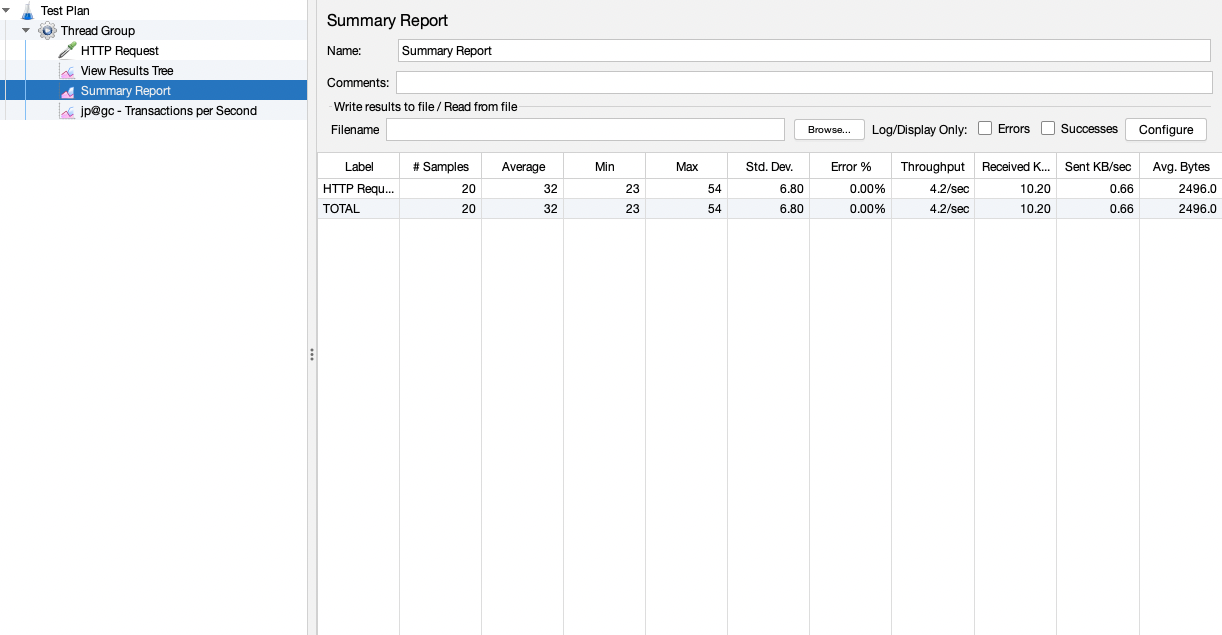 - Thread Group(우클릭) -> Add -> Listener -> Summaray Report