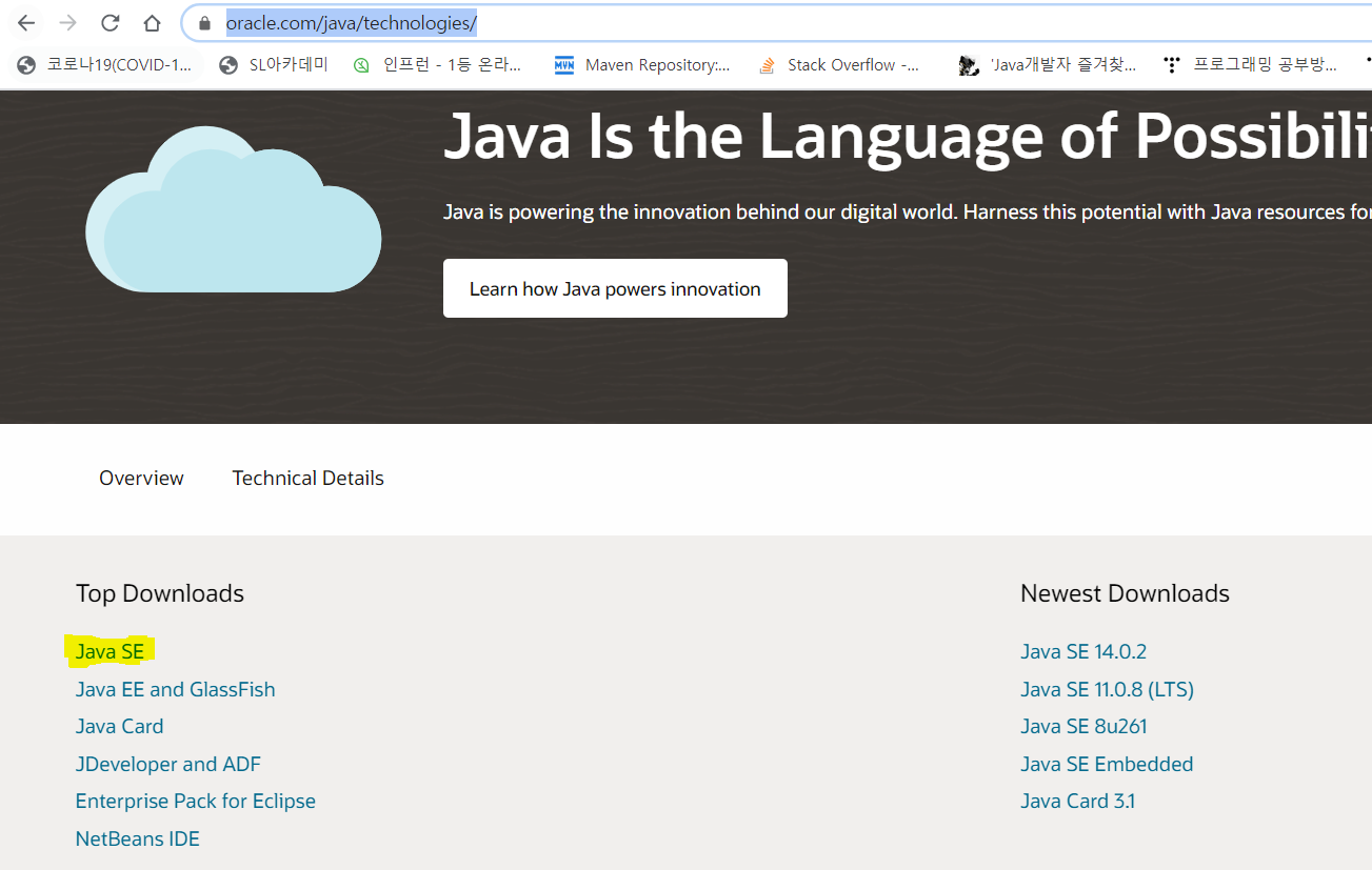 2. 사이트 중간쯤 위치한 Top Downloads에 Java SE 선택