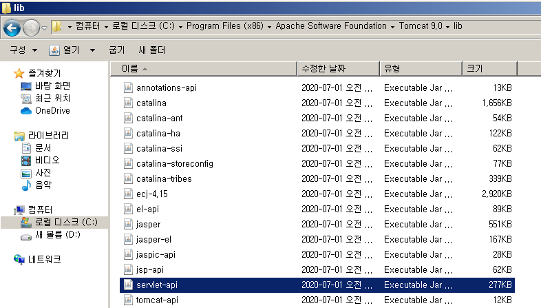 Apache Software Foundation > Tomcat9.0 > lib > servlet-api 복사