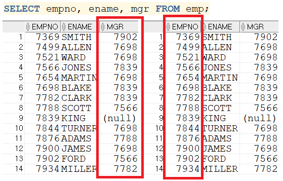 : 데이터를 가지고 있는 하나의 테이블을 메모리에서 별명 두 개로 사용해서 호출하는 방법