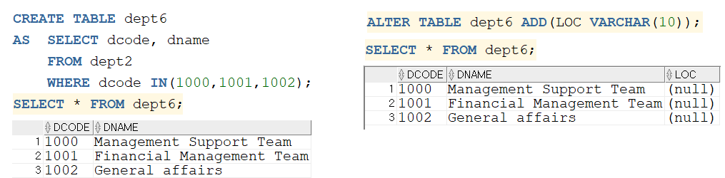 INSERT INTO DEPT2 VALUES ('1000','Management Support Team','0001','Seoul Branch Office');