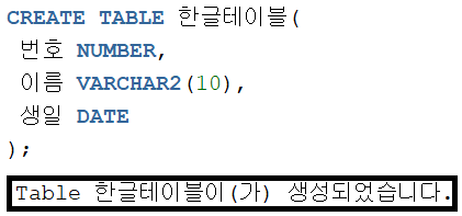 Name VARCHAR2(10), // Name 컬럼은 가변형 문자가 들어갈 수 있으며 최대 길이는 10자리