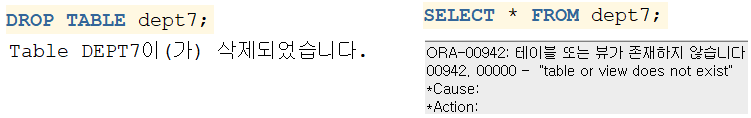: 이 명령어를 수행하면 테이블 자체가 지워지며, 해당 테이블에 생성되어 있던 인덱스 또한 함께 삭제됨