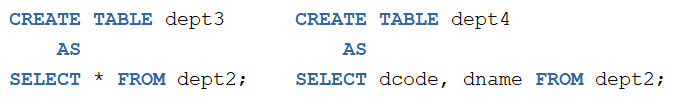 : 새로운 테이블을 생성할 때 기존에 만들어져 있는 테이블을 참조하여 생성하는 방법. 즉, 테이블을 복사하는 의미