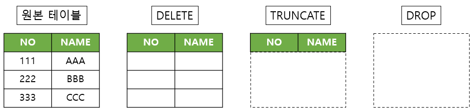DELETE, TRUNCATE, DROP 명령어의 차이점
