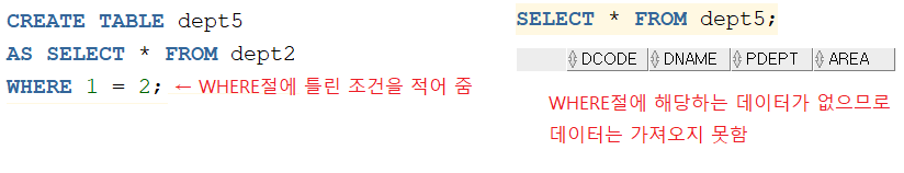 : 테이블의 구조(컬럼)만 가져오고 데이터는 가져오지 않기