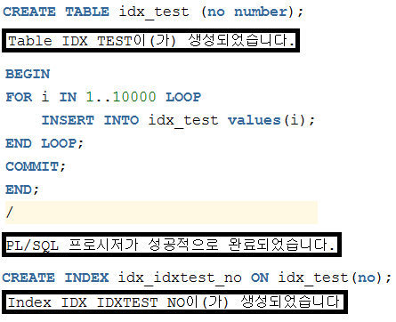 : 테스트 테이블 생성(값은 PL/SQL로 1~10000 넣음)