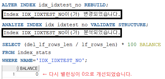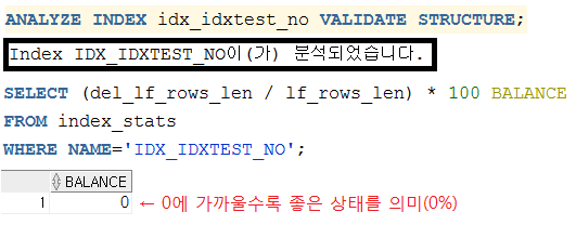 ANALYZE INDEX 인덱스명 VALIDATE STRUCTURE;