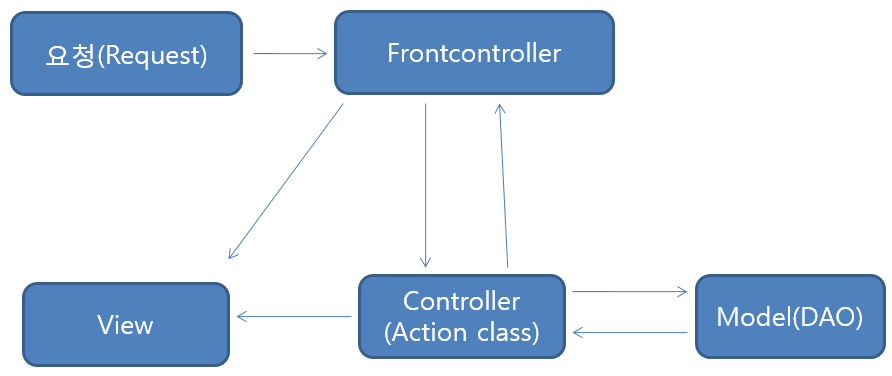 : 모델2는 Model과 View를 독립적으로 코딩하기 때문에 Controller를 만들어서 Model과 View 사이에 개입하여