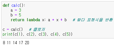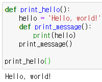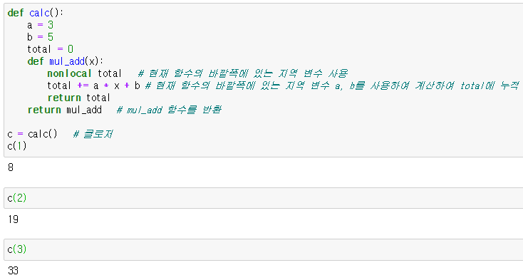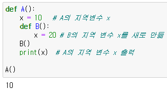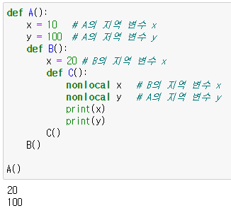 : 현재 함수 바깥쪽에 있는 지역 변수의 값을 변경하려면 nonlocal 키워드를 사용해야 함