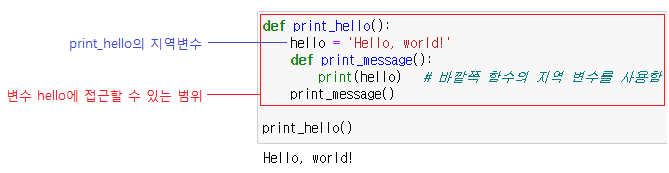 - 지역 변수에 접근할 수 있는 범위