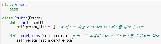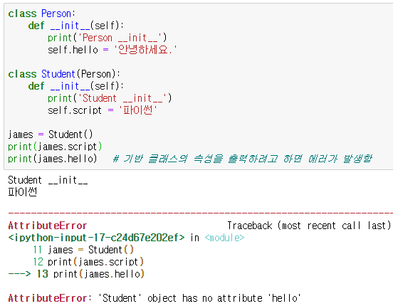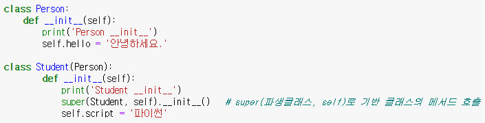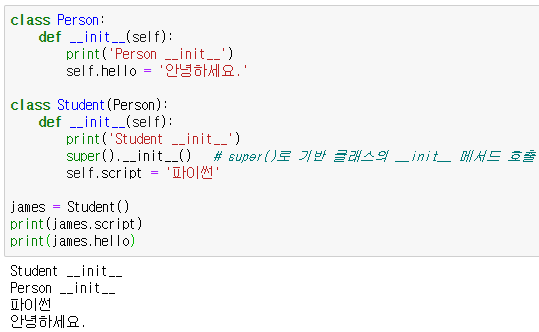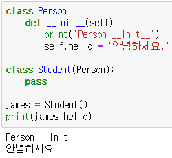 - Person의 __init__을 호출해주면서 기반 클래스가 초기화 되어 속성이 만들어짐