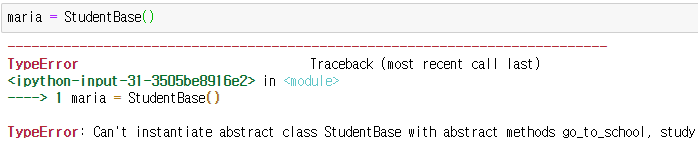 : 추상 클래스를 StudentBase로 인스턴스를 만들면 에러가 발생함