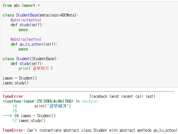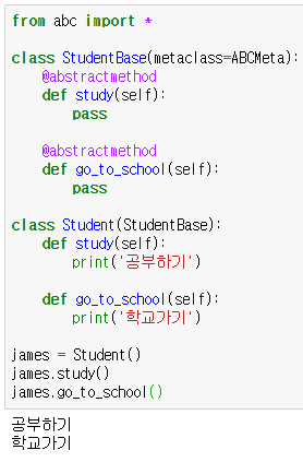 : 그리고 클래스의 (괄호) 안에 metaclass=ABCMeta를 지정