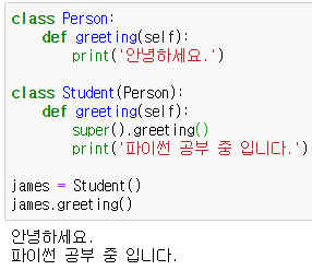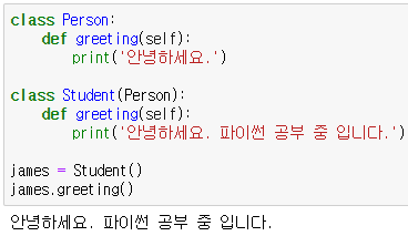 : Person의 greeting 메서드가 있는 상태에서 Student에도 greeting 메서드를 만듦