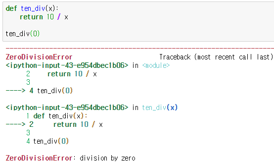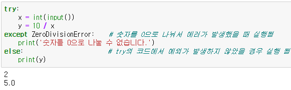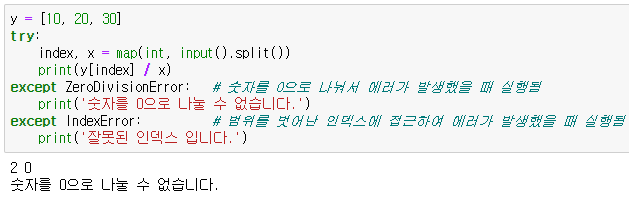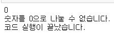 : 숫자를 0으로 나누면 ZeroDivisionError 예외가 발생함