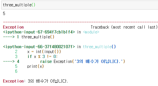 : 만약 함수 바깥에도 처리해줄 except가 없다면 코드 실행은 중지되고 에러가 표시됨