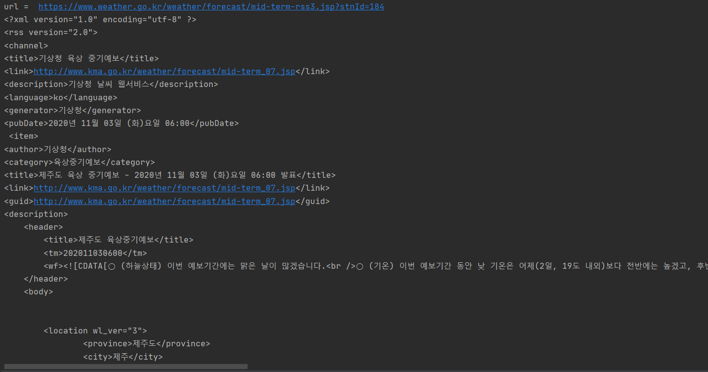 rssUrl = "https://www.weather.go.kr/weather/forecast/mid-term-rss3.jsp"